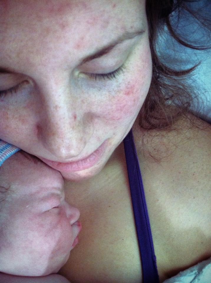 When the contractions got really strong all I wanted to do was lay in the bed. I would pass out during them because they were so intense. Jeremie had a bucket of ice water with lemon extracts in it, he dipped a wash cloth in it and put it over my face during. It helped so much with nausea and distracted me from the pain for a couple seconds. When I felt that urge to push I was only 9.5cm dilated again, just like with Avery. My midwives let me try. Think I only pushed for about 15minutes and she was here. And just like with Avery I felt absolutely no pain through the actual child birth! It’s insane to me that our bodies can do that! And again that rush of hormones right after childbirth is worth the hours of labor. NEVER have I ever felt so alive! And happy!
